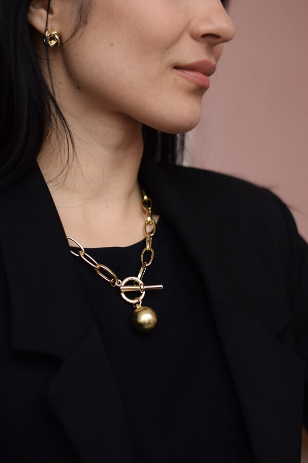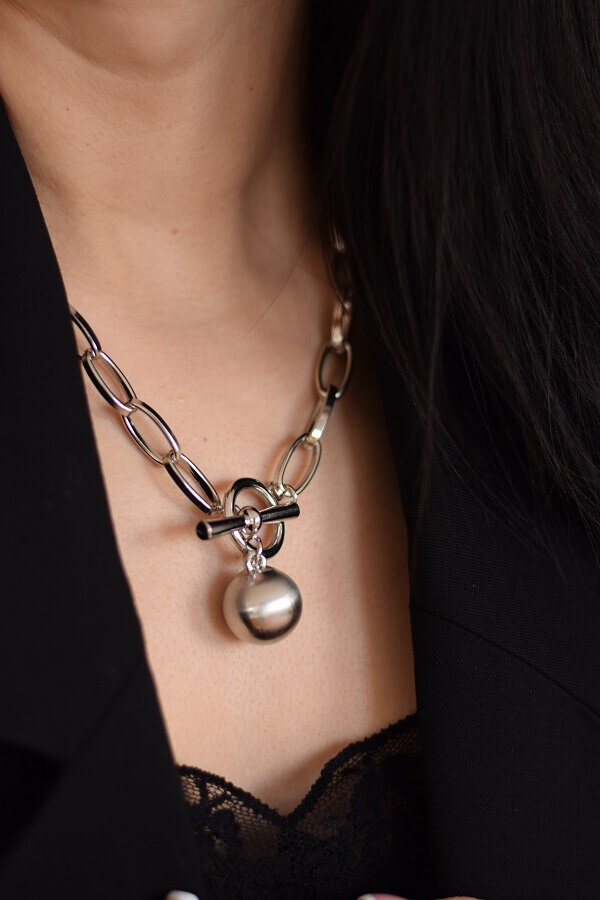 - Колье из крупных звеньев с шаром – длина 45 см