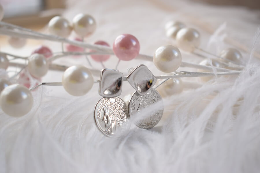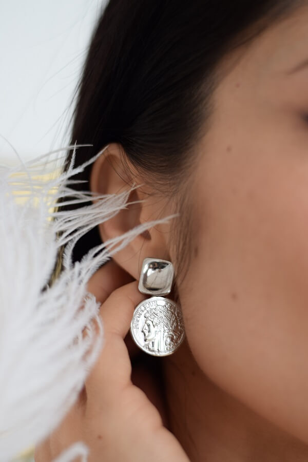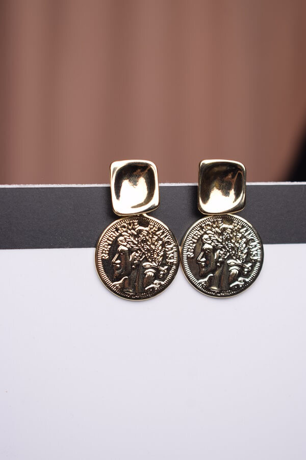 - Серьги-гвоздики с подвеской монетой - длина 2,5 см