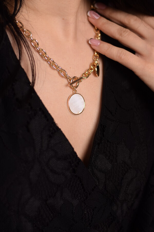 - Колье с перламутровой подвеской – длина 47 см