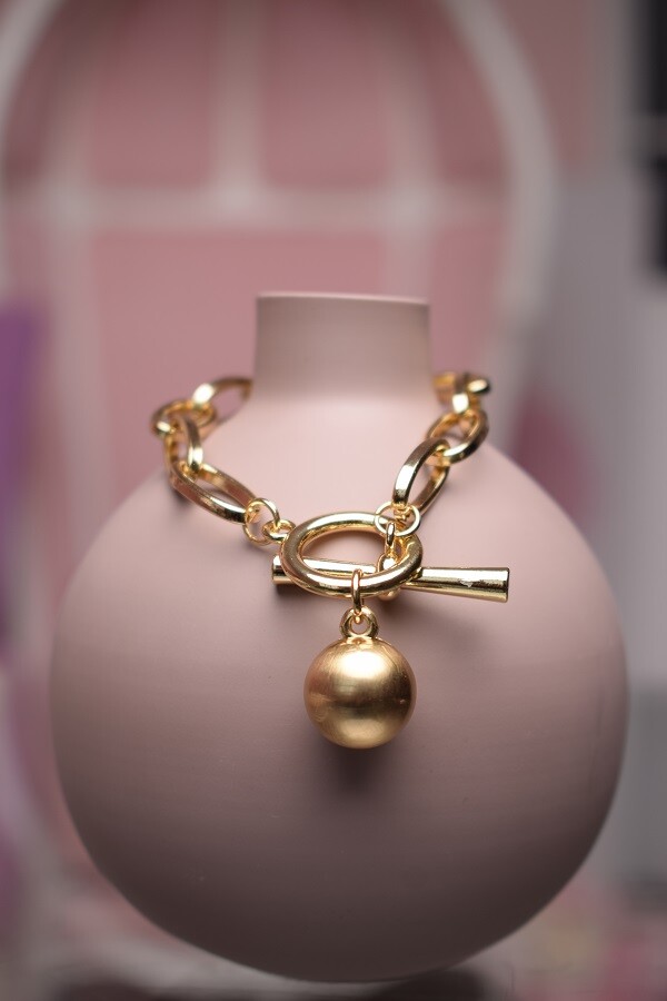 - Браслет из крупных звеньев с шаром – длина 20 см